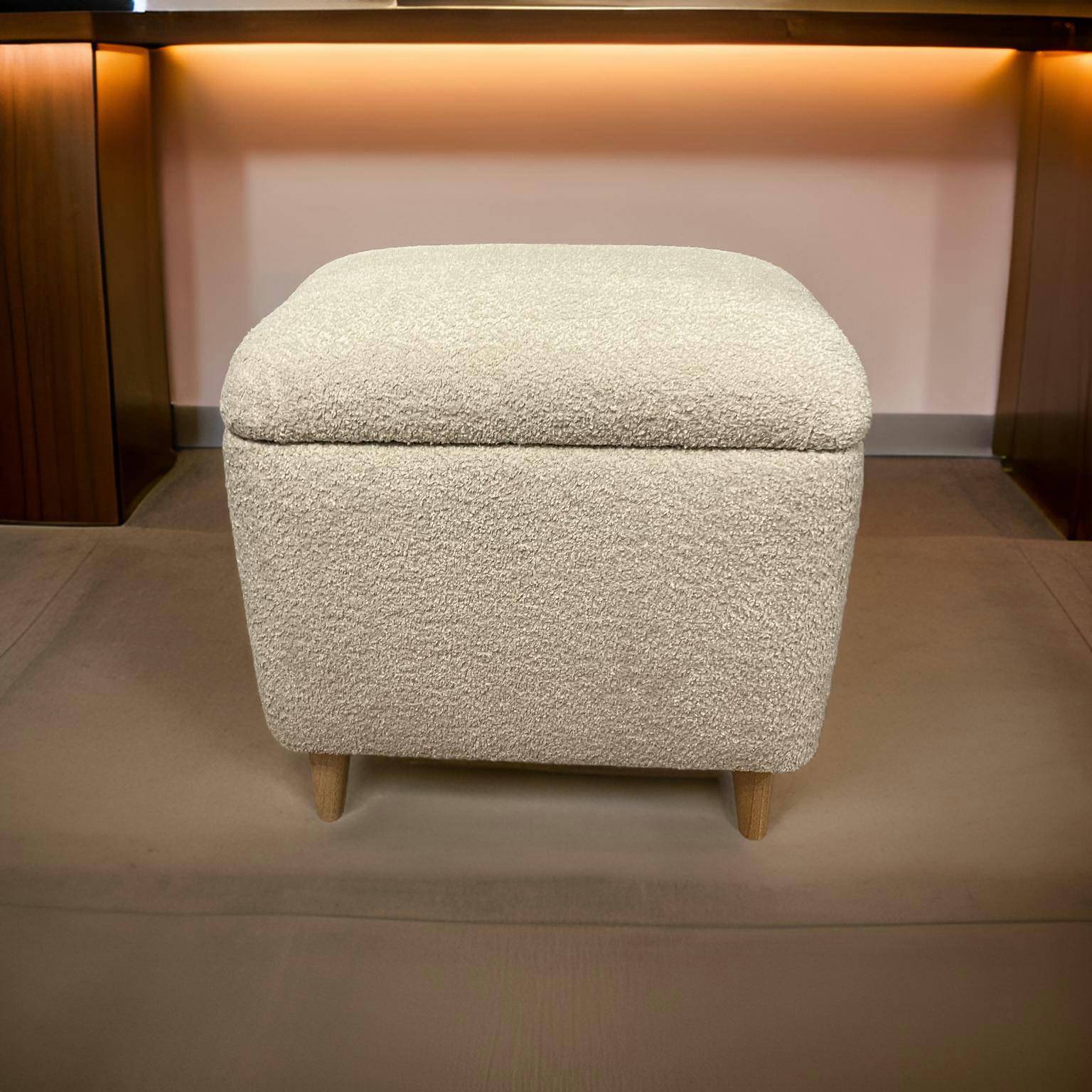 Spotted this unusual pouffe during an internet trawl. Then saw it was produced locally too. Samples of material hand delivered so I could be sure on colour, fabric etc. Pouffe arrived, hand delivered on date as promised. Beautiful product, excellent storage space under lid and comfortable to sit on.